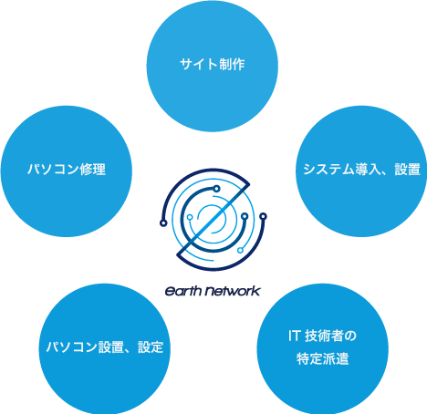 現在では、Webサイト制作事業、パソコン修理事業、パソコン設置設定事業、IT技術者の特定派遣事業、システム導入設置事業など、情報産業の中でさまざまな事業を行っています。